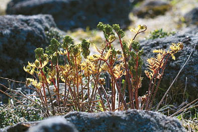 고비(Osmunda japonica Thunb.) 봄철 입맛을 돋우는 데는 제철 봄나물이 최고의 선택인 듯하다. 그 중 초록빛의 햇고사리 나물은 우리의 입맛은 물론 눈까지 즐겁게 만드는 음식이다. 그런데 또 다른 고사리는 먹을 수 있는 게 없을까? 일반적으로 양치식물은 독성이 있어서 먹지 못하는 독초로 분류된다.왜냐하면 양치식물에는 비타민B1(티아민)을 분해하는 효소인 티아미나아제(thiaminase)가 들어 있다.따라서 양치식물을 장기간 생식할 경우 비타민B1 결핍증인 각기병(beriberi)에 걸릴 수 있는 것으로 알려져 있기 때문이다. 그러나 한국을 비롯해 중국, 일본의 동남아시아권의 국가와 히말라야, 호주 등에서는 다양한 종류의 양치식물을 식재료로 사용한다. 각국의 조리법은 독성분이 들어있는 양치식물을 삶거나 데쳐 티아미나아제의 활성을 없애고 먹는 식습관을 가지고 있다.옛사람들의 지혜가 돋보이는 대목이다. 한국에서는 고사리, 고비, 청나래고사리, 섬고사리(참고비, 울릉도) 등을 즐겨 먹는다. 일본 등에서는 이외에 쇠뜨기(포자엽의 줄기), 응달고사리, 물고사리 등도 먹는 것으로 알려져 있으며 졸임, 튀김 등 조리법도 다양하다. 동남아시아권에서는 물고사리, Blechnum orientale, Diplazium esculentum, Stenochlaena palustris 등의 어린잎을 요리에 이용한다. 또한 호주의 원주민들은 네가래속 식물인 나르두(nardoo, Marsilea drummondii)의 콩모양의 포자낭과(胞子囊果)를 갈아 가루를 내어 묽은 죽을 쑤어 먹었다고 한다. 제주 속담에 '고사리는 아홉 성제(형제)다' 라는 말이 있다.이 말은 봄에 돋아나는 고사리의 줄기가 한 번 꺾이면 계속해서 아홉 번까지 다시 돋아난다는 뜻이다.그 만큼 끈질기고 인내심이 강한 사람을 비유하는 말이기도 하다. 힘든 시기에 우리도 고사리 같은 삶을 살아야 하지 않을까 싶다.