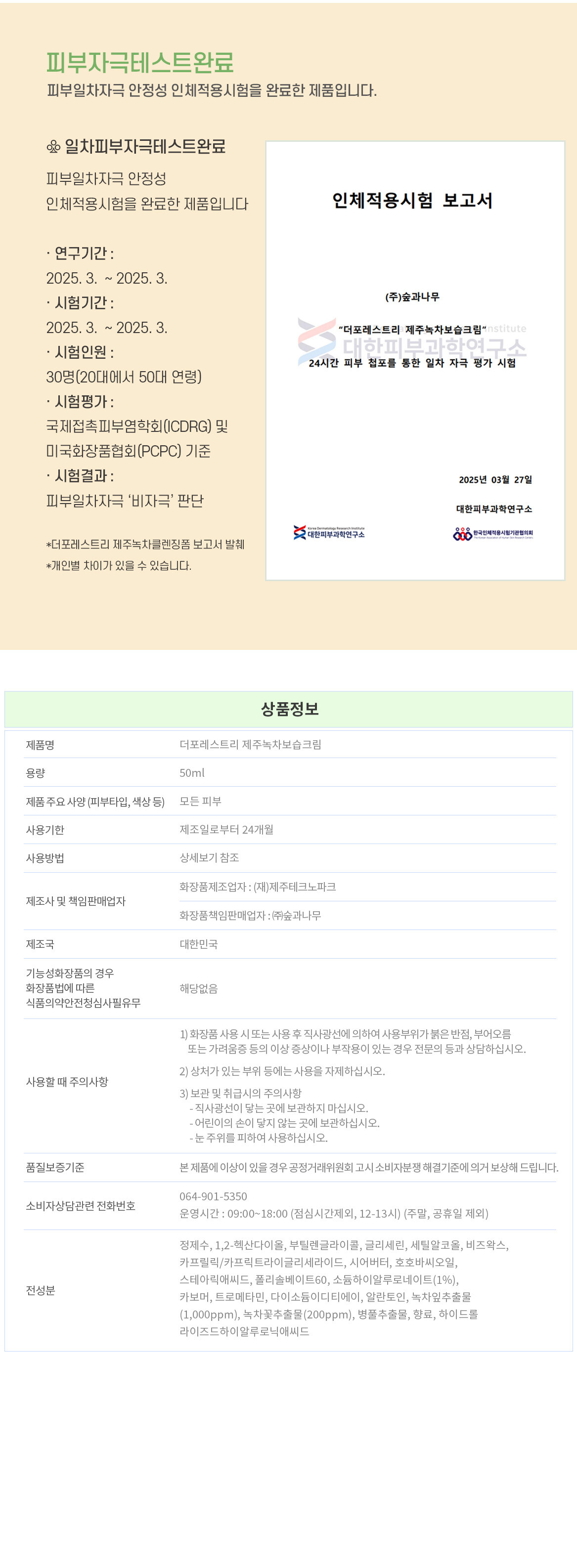 더포레스트리제주녹차보습크림