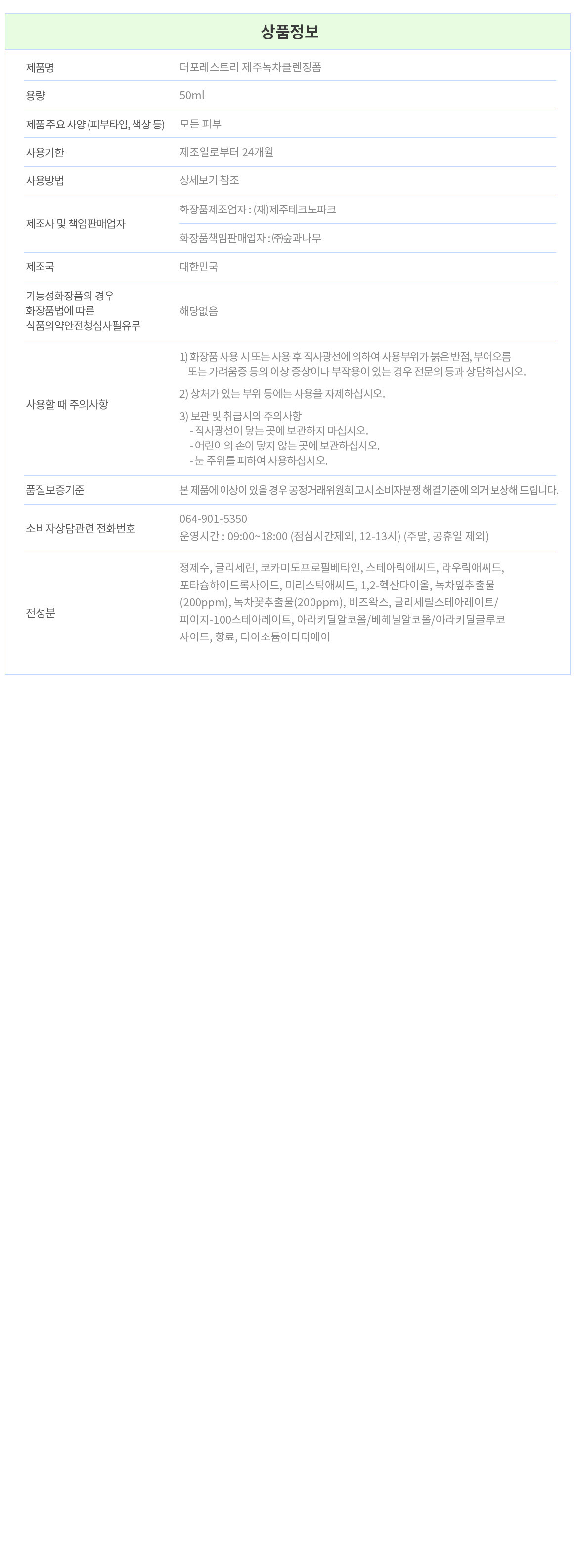 더포레스트리제주녹차클렌징폼